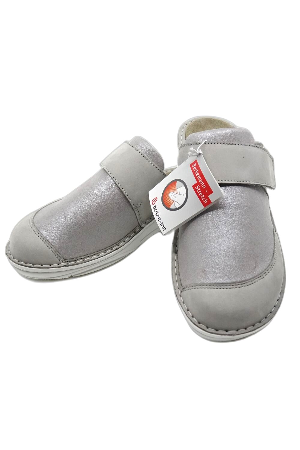 Klapki BERKEMANN Giorgina 03428 627 szary to Klasycznymodel klapka z krytym przodem. Wierzch buta wykonany jest ze skóry nubukowej oraz stretchu. Gąbeczka stretchowa chroni halluxa przed otarciami i odgnieceniami, przywracając komfort chodzenia. Szeroki, elastyczny przód i regulacja na rzep pozwala na dopasowanie buta do każdej stopy. Profilowana wkładka odciąża kręgosłup i przynosi ulgę zmęczonym stopom. Wysokość podeszwy wynosi 4,5 cm. Idealnie sprawdzą się zarówno do chodzenia po dworze jak i w pomieszczeniach. W ofercie mamy też buty na opuchnięte stopy. W ofercie mamy też buty na opuchnięte stopy.