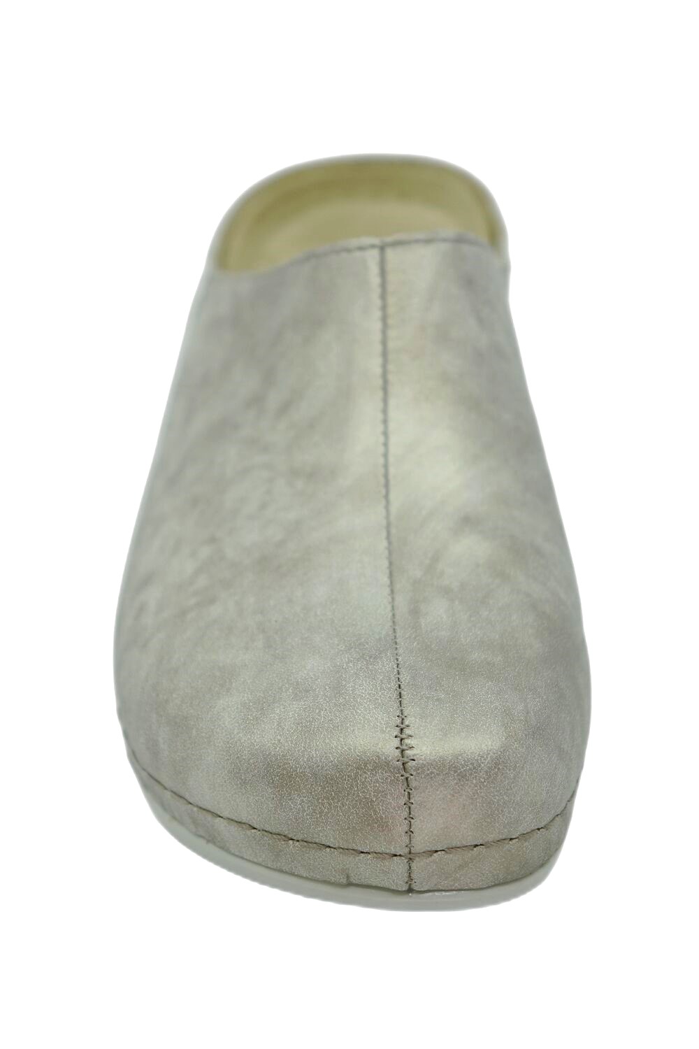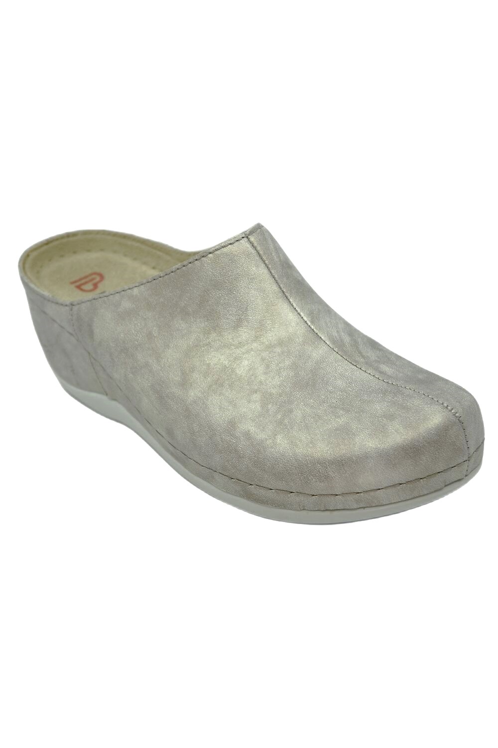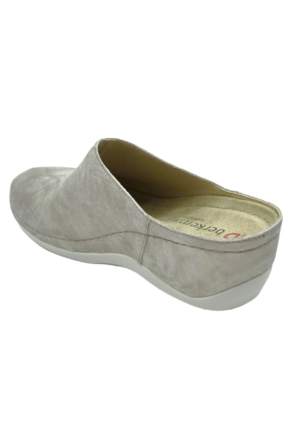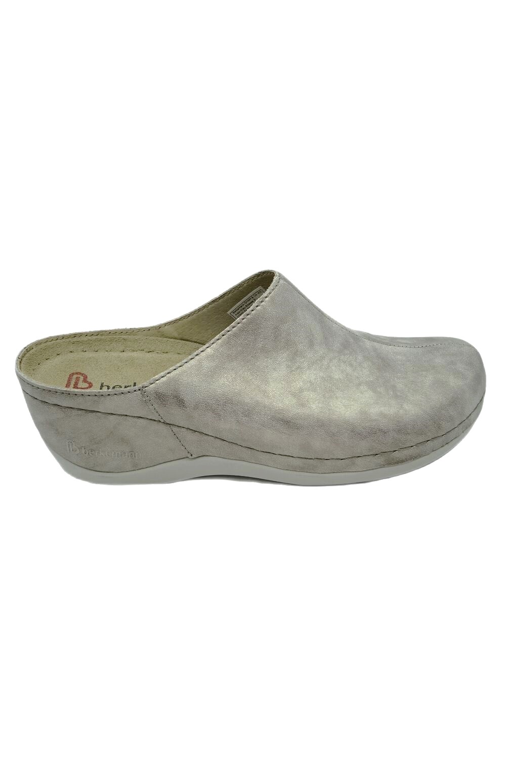 Klapki BERKEMANN Jada 01753-611 złoty to ponadczasowy zawsze modny i uwielbiany przez Panie damski model buta na koturnie, z zakrytym przodem. Wykonany z licowej skóry. Wyprofilowana skórzana wkładka świetnie odciąża stopę i zapewnia komfort nawet przy długotrwałym staniu , czy chodzeniu. W ofercie sklepu mamy teżmodne buty na haluksy.