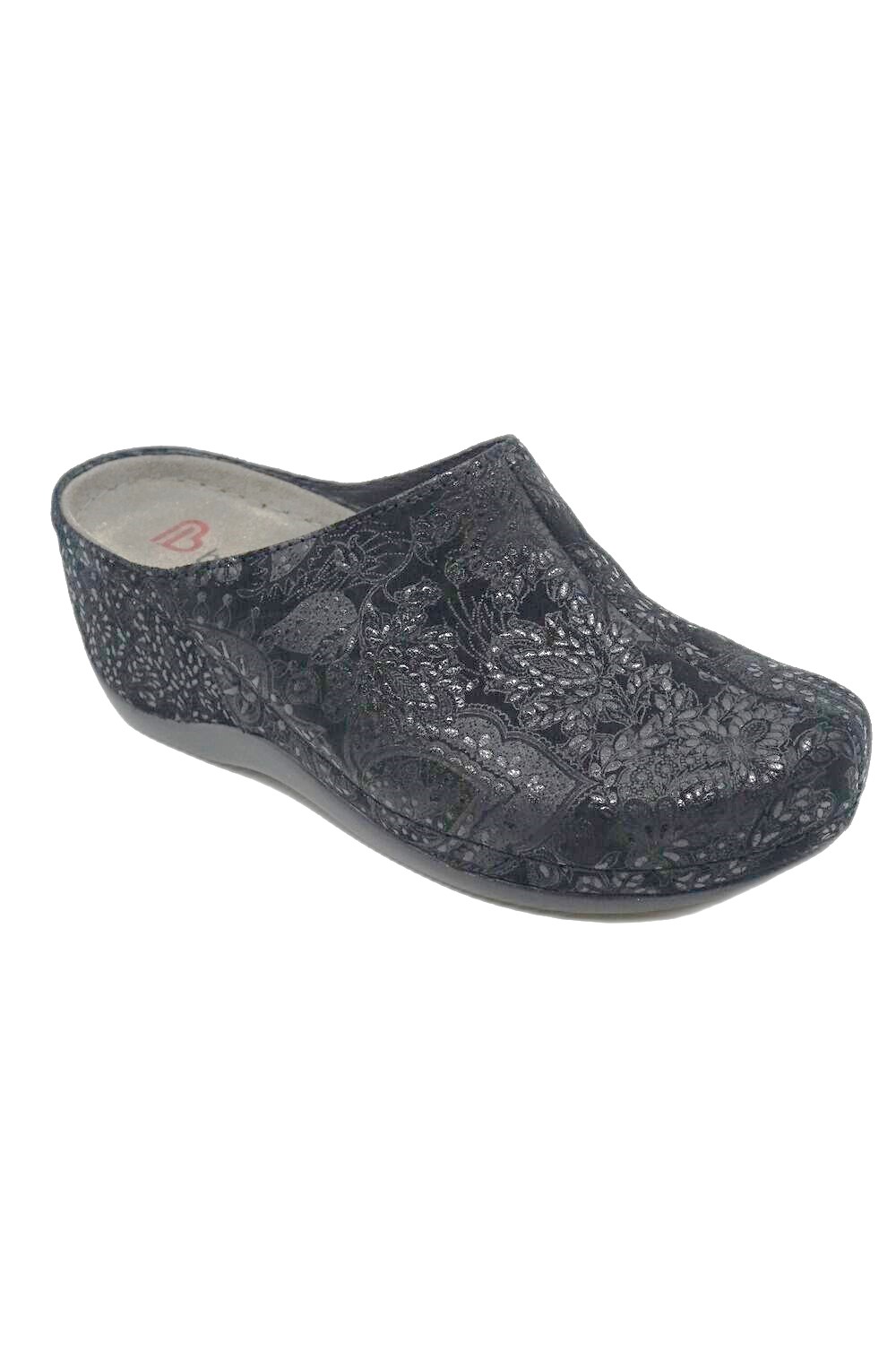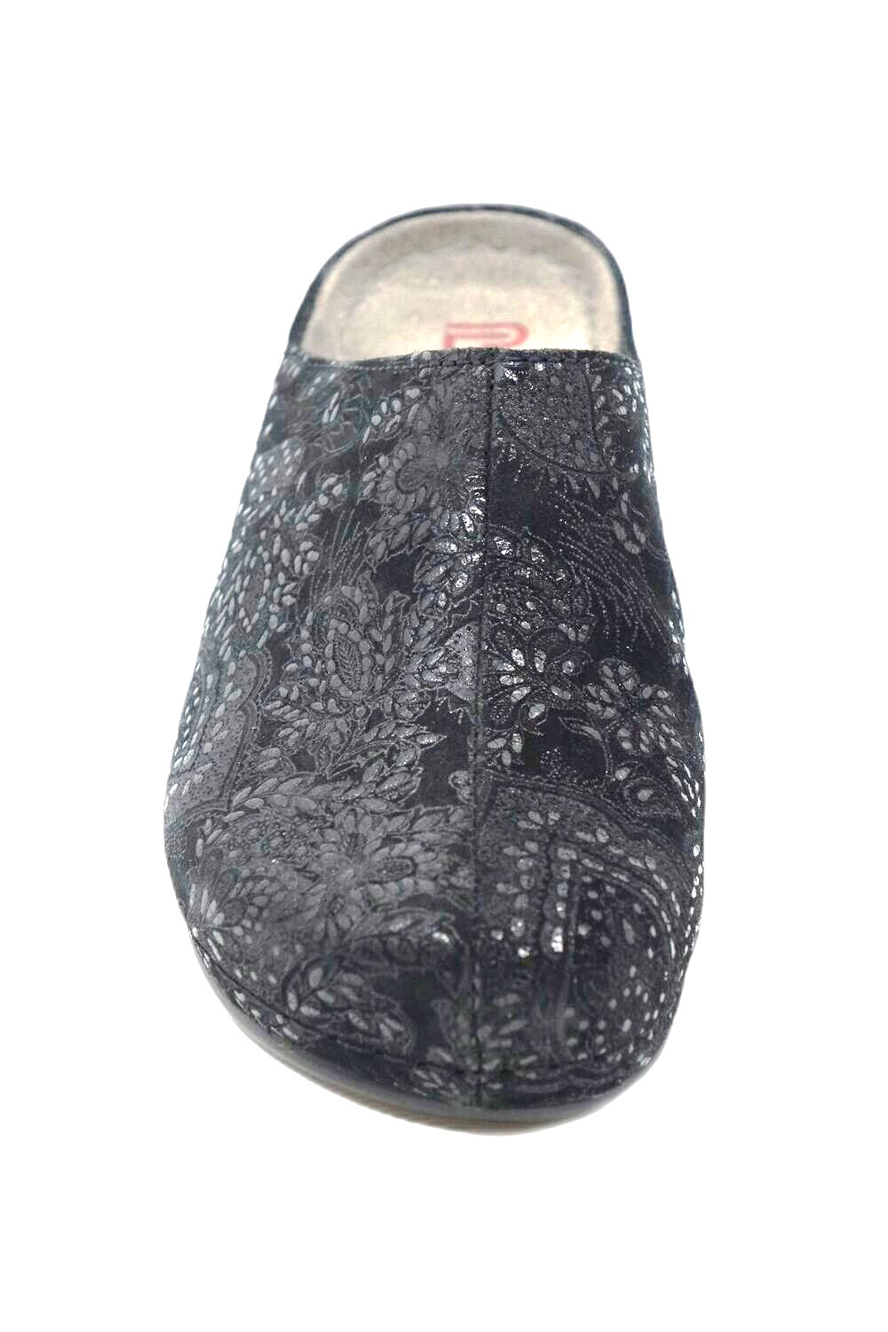 Klapki BERKEMANN Jada 1753-697 czarny to ponadczasowy zawsze modny i uwielbiany przez Panie damski model klapka na koturnie, z zakrytym przodem. Wykonany ze skóry nubukowej. Atrakcyjności dodaje błyszczący nadruk na cholewce. Materiał wierzchni – skóra naturalna. Materiał wewnętrzny – skóra naturalna. Wkładka – skóra naturalna. Wyprofilowana skórzana wkładka świetnie odciąża stopę i zapewnia komfort nawet przy długotrwałym staniu, czy chodzeniu. W ofercie mamy też modne buty na haluksy.