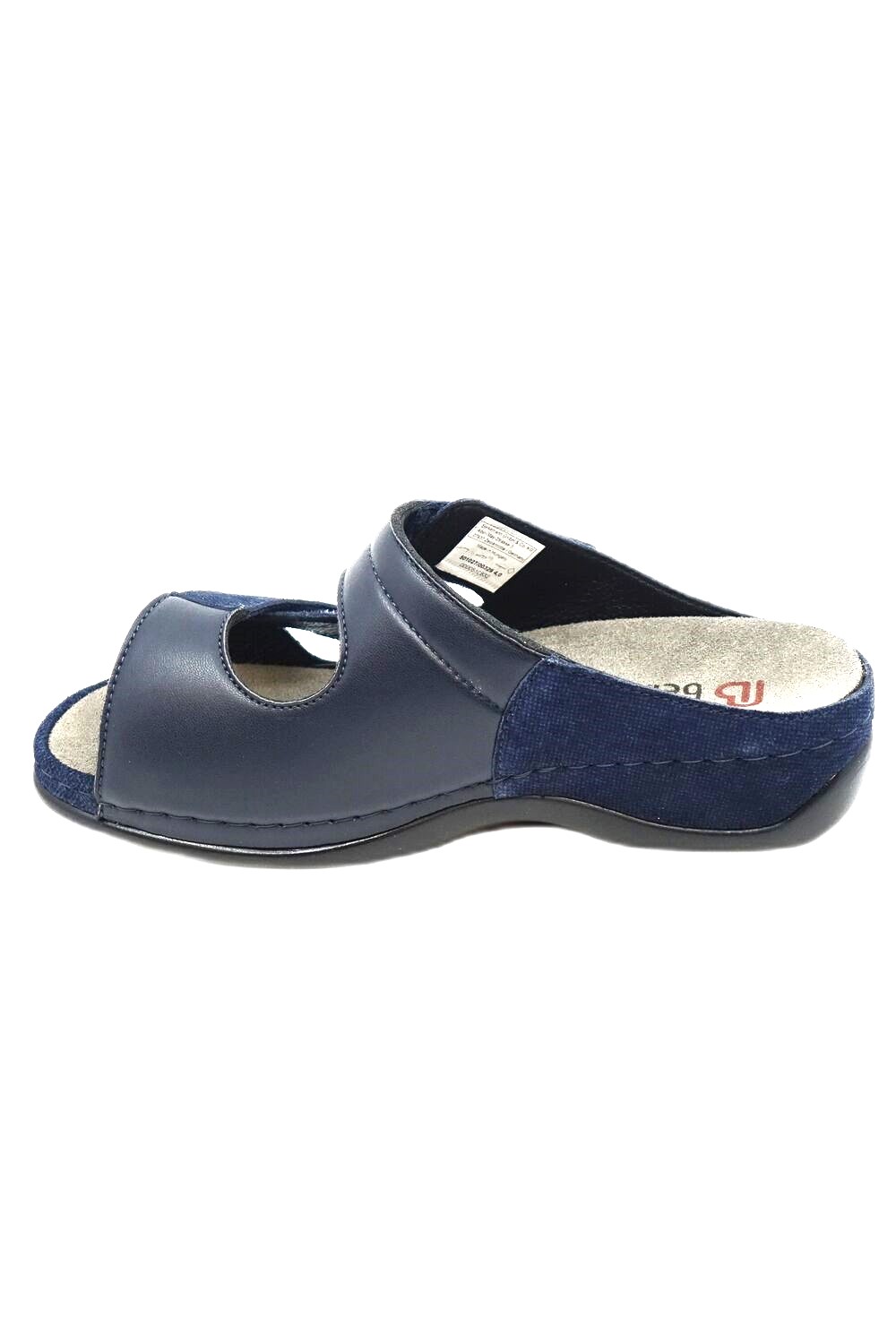Klapki BERKEMANN Janna 500 01027 329 Granatowy to klasyczny, ponadczasowy model obuwia uwielbiany przez klientki. Wykonany ze skóry naturalnej oraz gąbeczki stretchowej pokrytej skórą licową. Gąbeczka chroni halluxa przed otarciami i odgnieceniami. Wyprofilowana, wymienna, skórzana wkładka przynosi ulgę zmęczonym i obolałym stopom. Amortyzacja w tylnej części podeszwy odciąża kręgosłup zwiększając komfort użytkowania. Tęgość regulowana H +. Długa podwójna regulacja na rzepy pozwala dopasować obuwie nawet do szerokiej, zdeformowanej stopy. W ofercie mamy też sandały na szeroką stopę.