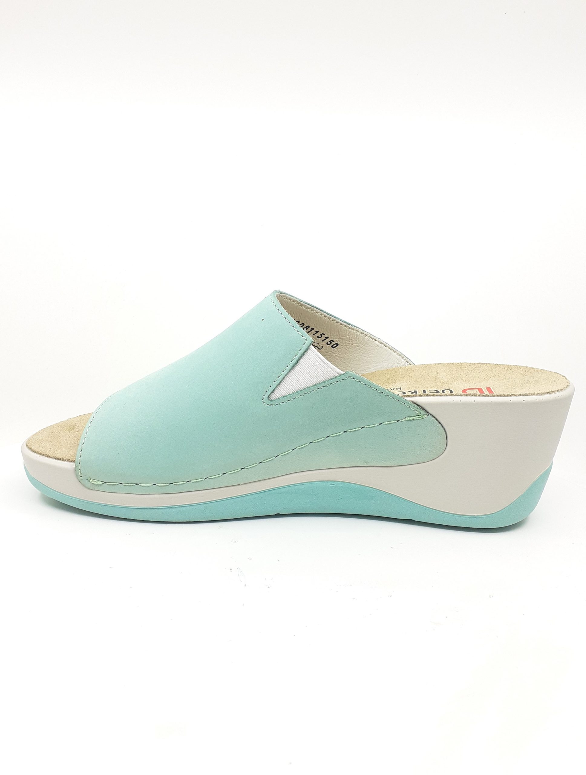 Klapki BERKEMANN Saphira 01200-811 zielony to damskie buty na wysokim koturnie wykonane ze skóry nubukowej. Z boku wszyta jest gumka, pomaga ona dopasować tęgość buta do nogi. Wkładka skórzana, profilowana z możliwością wyjęcia i zastąpienia wkładką indywidualną. Jest też możliwość dokupienia oryginalnej wkładki na wymianę. Podeszwa wykonana z wysokogatunkowego tworzywa, wysokość podeszwy z przodu 3cm, wysokość obcasa 6,5cm. W ofercie sklepu mamy też buty na haluksy.