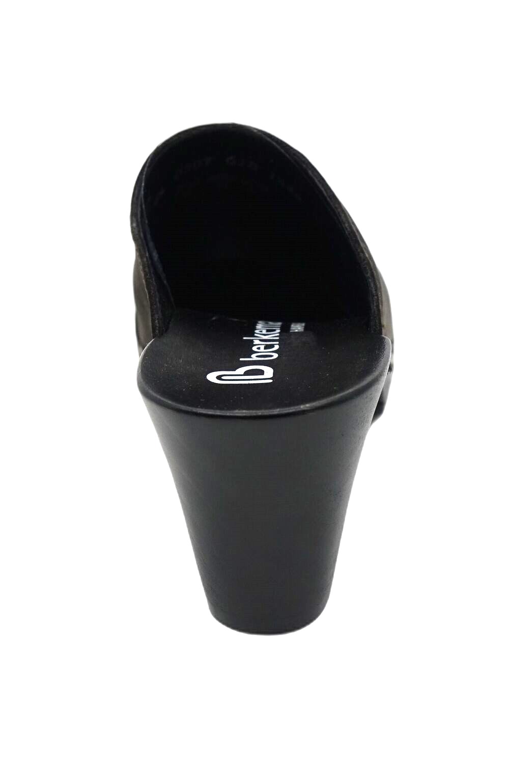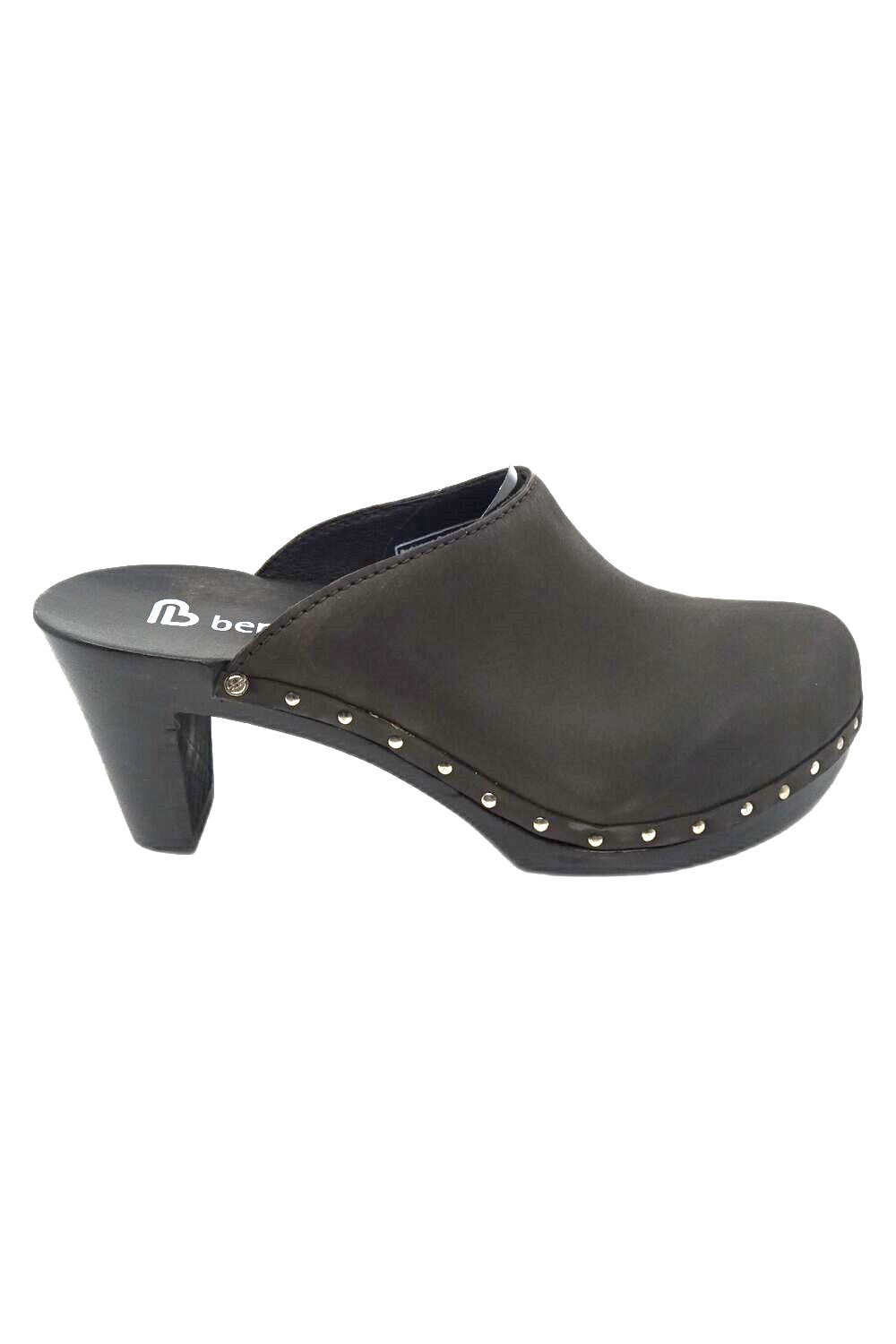 Klapki BERKEMANN Trudi 00307-618 czarny to elegancki drewniak damski typu klapek z krytym przodem. Wykonany jest z naturalnej skóry. Podeszwa wykonana z lekkiego drewna wysokiej jakości, z podwyższonym obcasem, wysokości ok. 7cm. Podeszwa posiada od strony stopy wyprofilowanie. W ofercie sklepu mamy też buty męskie na haluksy.