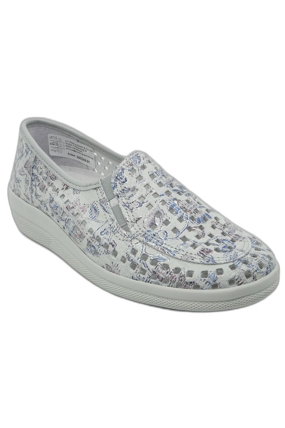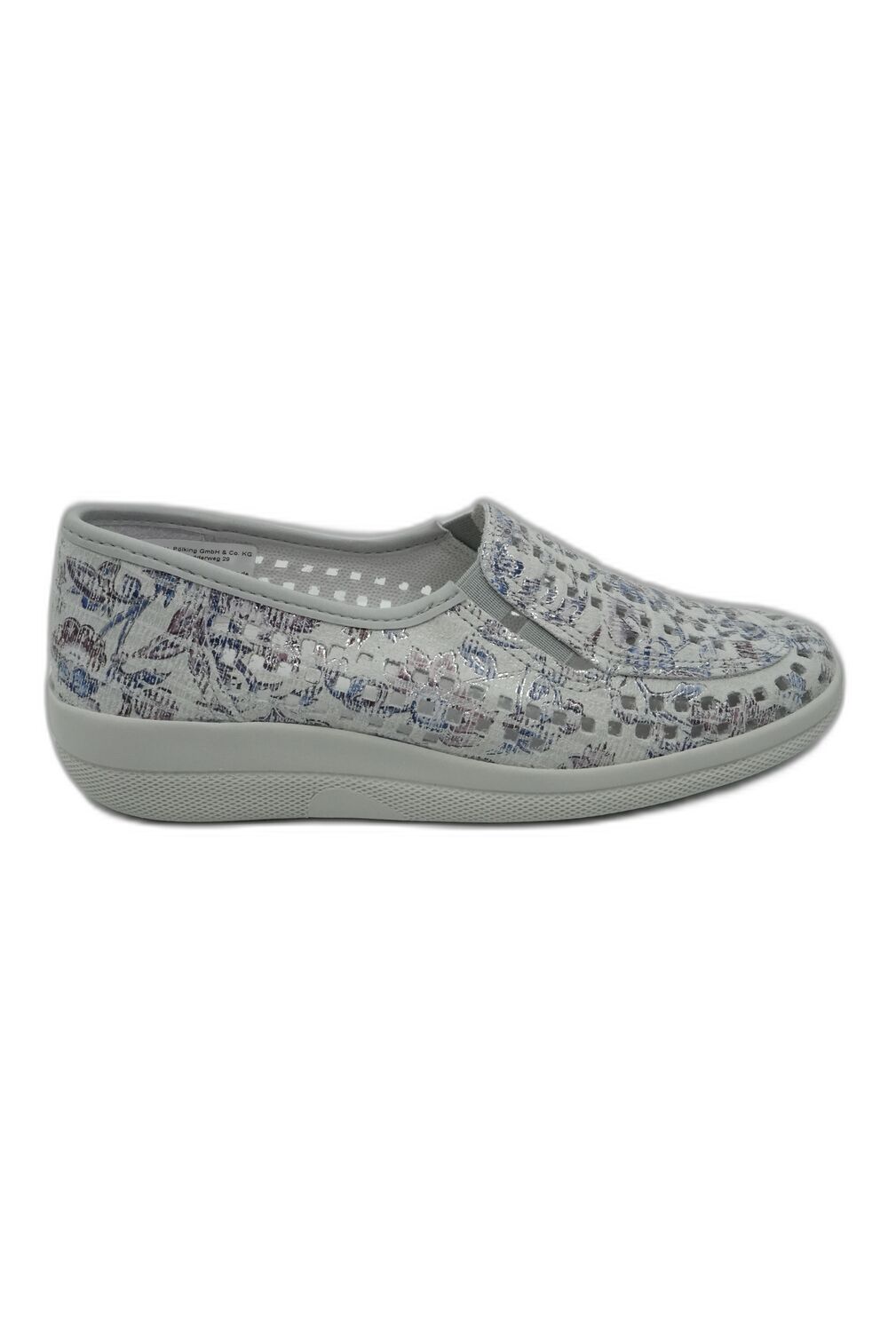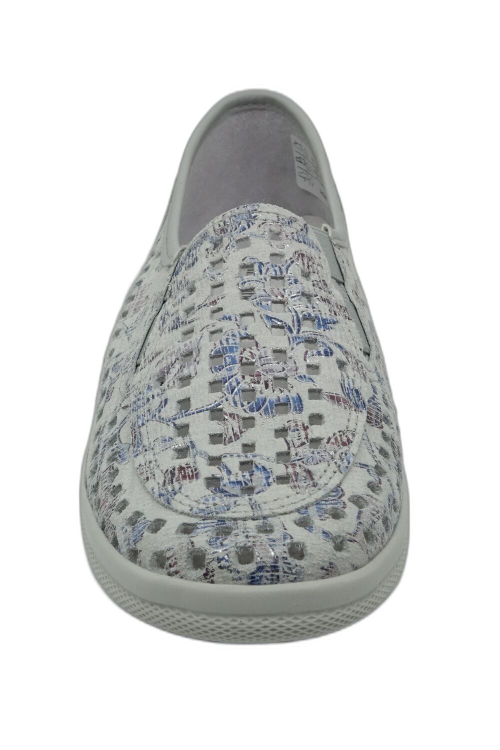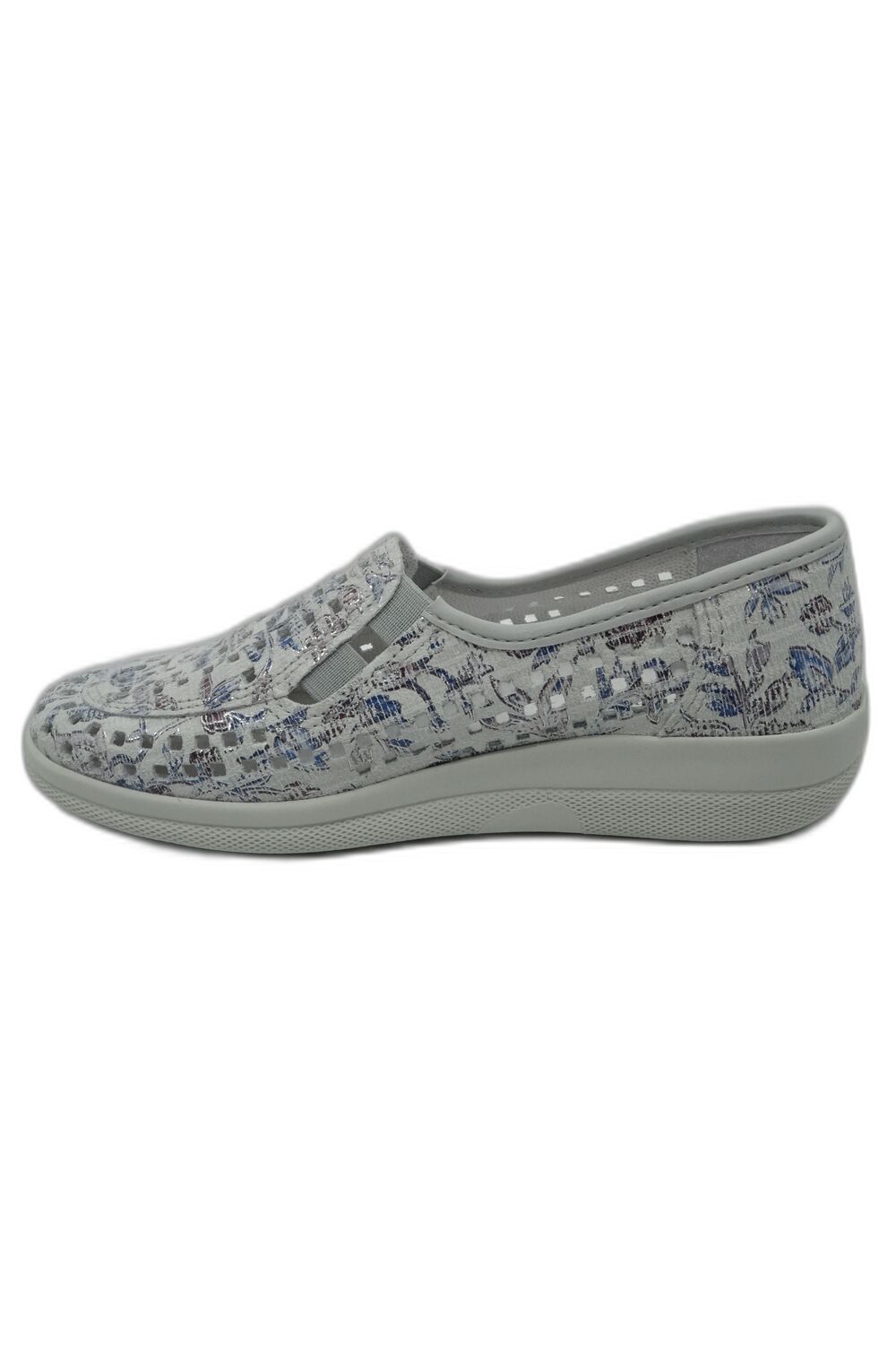 Półbuty COMFORTABEL 94249-91 szary to wygodne lekkie obuwie damskie wykonane ze skóry , Miękka cholewka i gumki znajdujące się po obu stronach przedniej części buta mają ułatwić wkładanie buta i dopasowanie sie go do stopy. Dzięki ażurowej, przewiewnej cholewce pólbuty mozna nosić też latem .