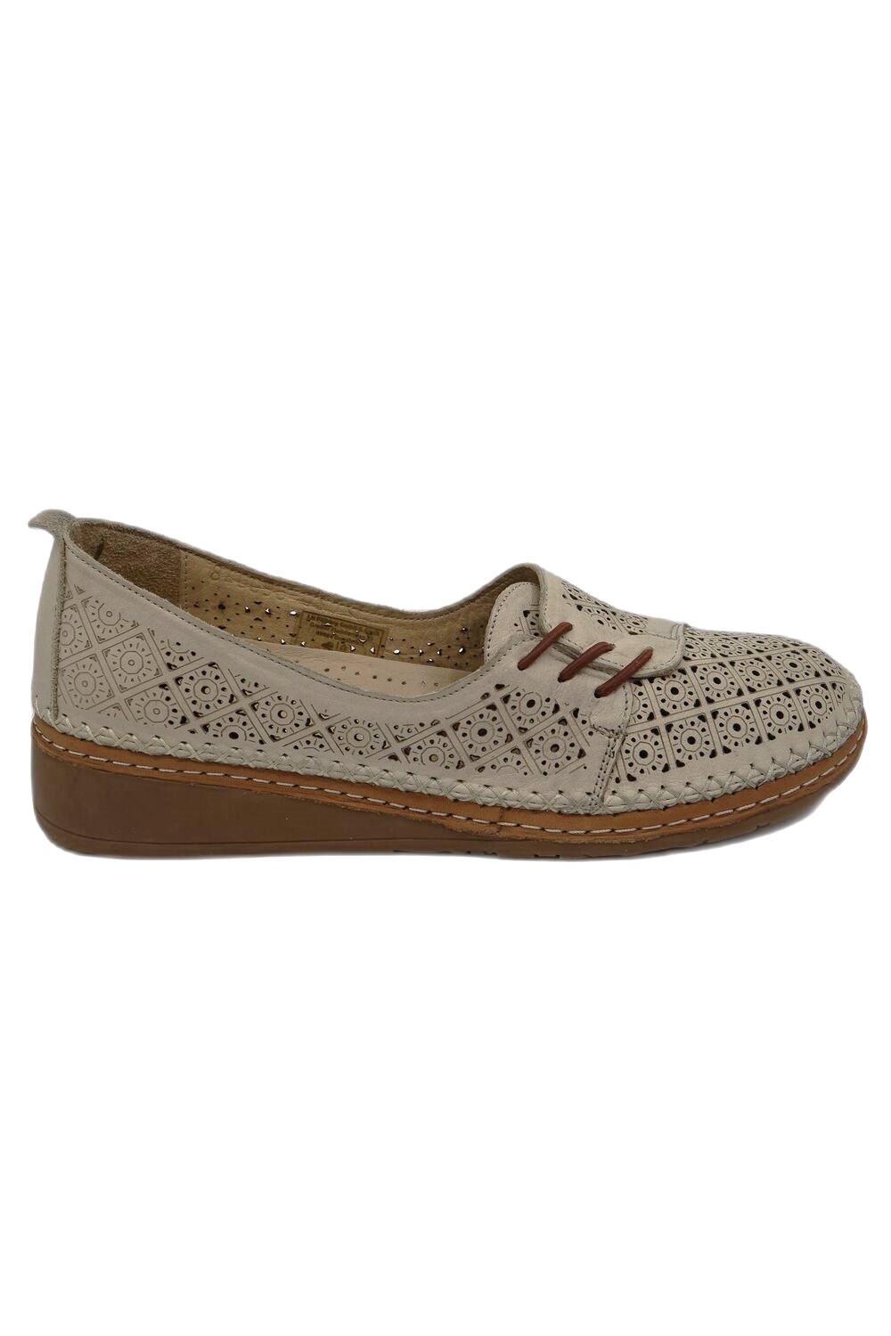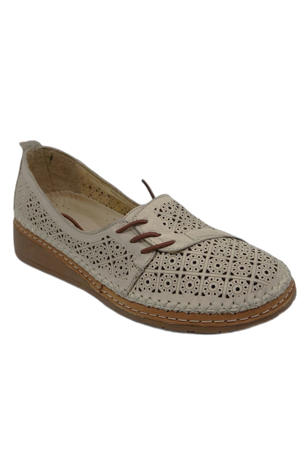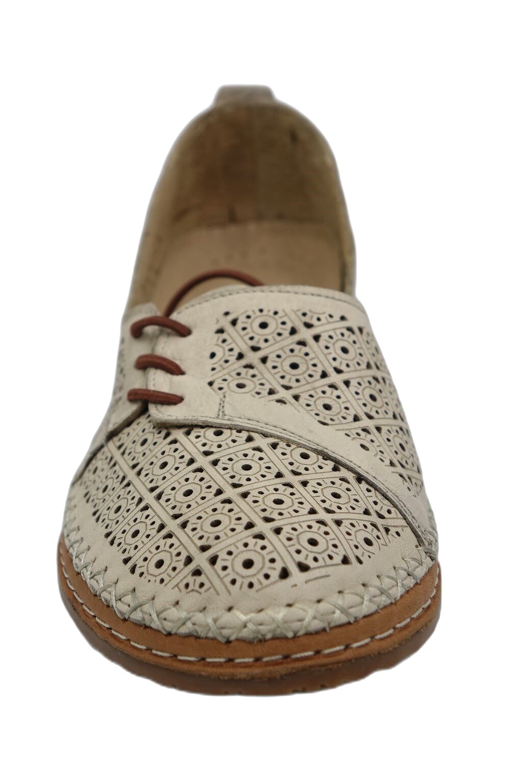Półbuty MANITU 840096-08 beż to eleganckie wiosenno – letnie kobiece obuwie w jasnym kolorze. Wykonane zostało z miękkiej, naturalnej skóry. Delikatny ażurek nadaje obuwiu lekkości i finezji.