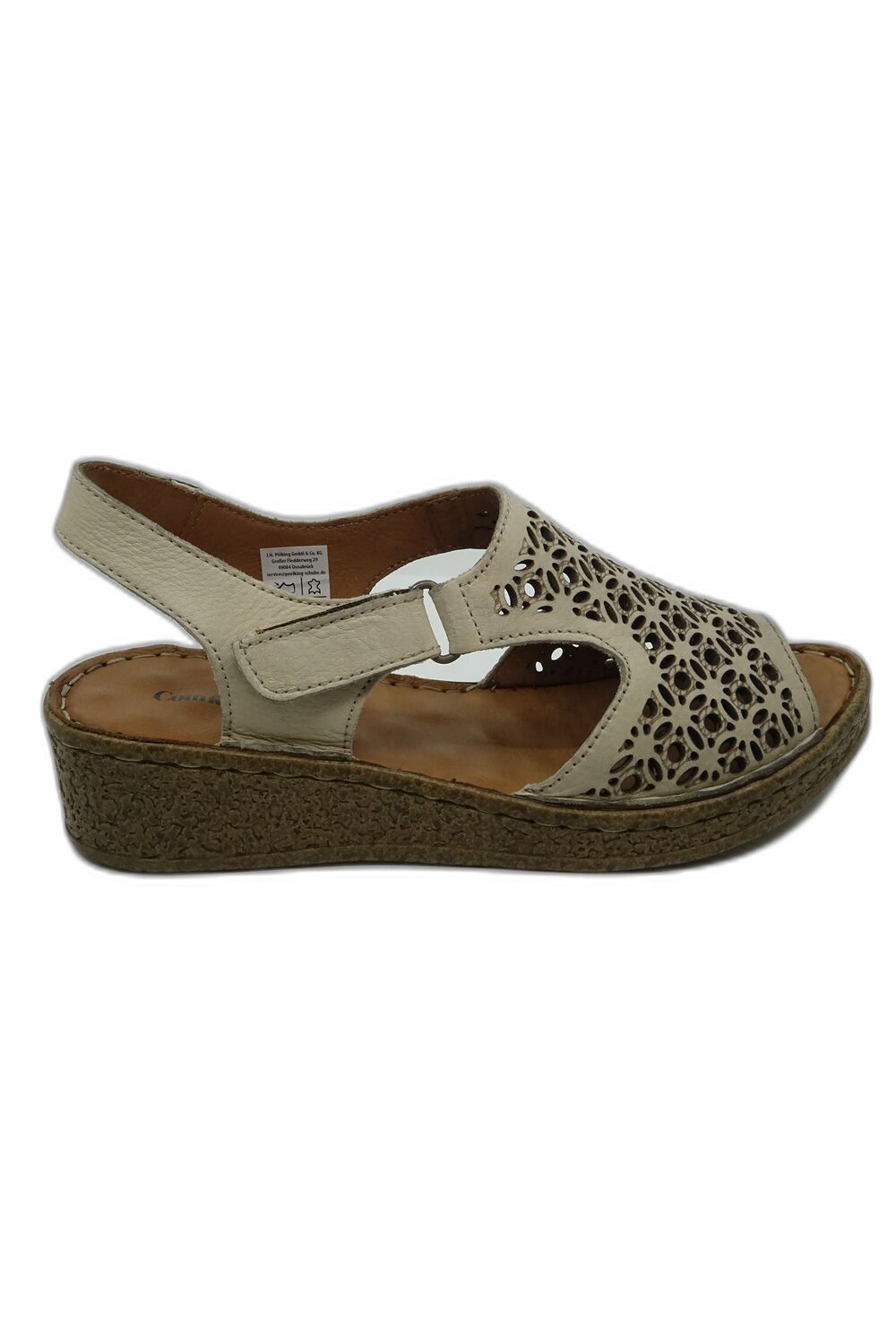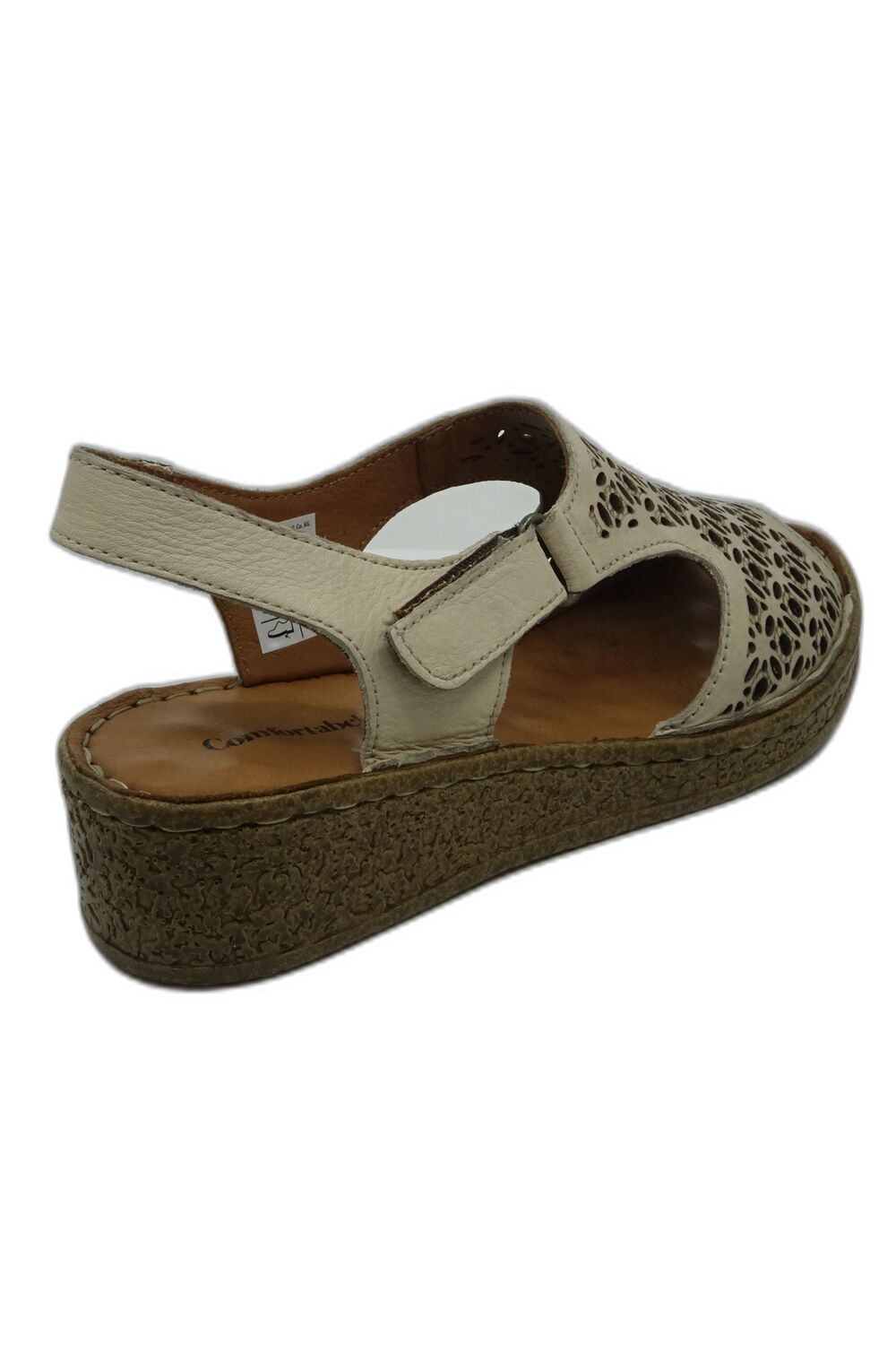 Sandały COMFORTABEL 710226 -08 beżowy to elegancki, wygodny model letniego obuwia dmskiegowykonany ze skóry licowej. Wzorek ażurowy dodaje sandałom elegancji. Pasek podtrzymujący tył stopy zapinany jest na rzep. Buty te będą doskonałym dopełnieniem letnich stylizacji.