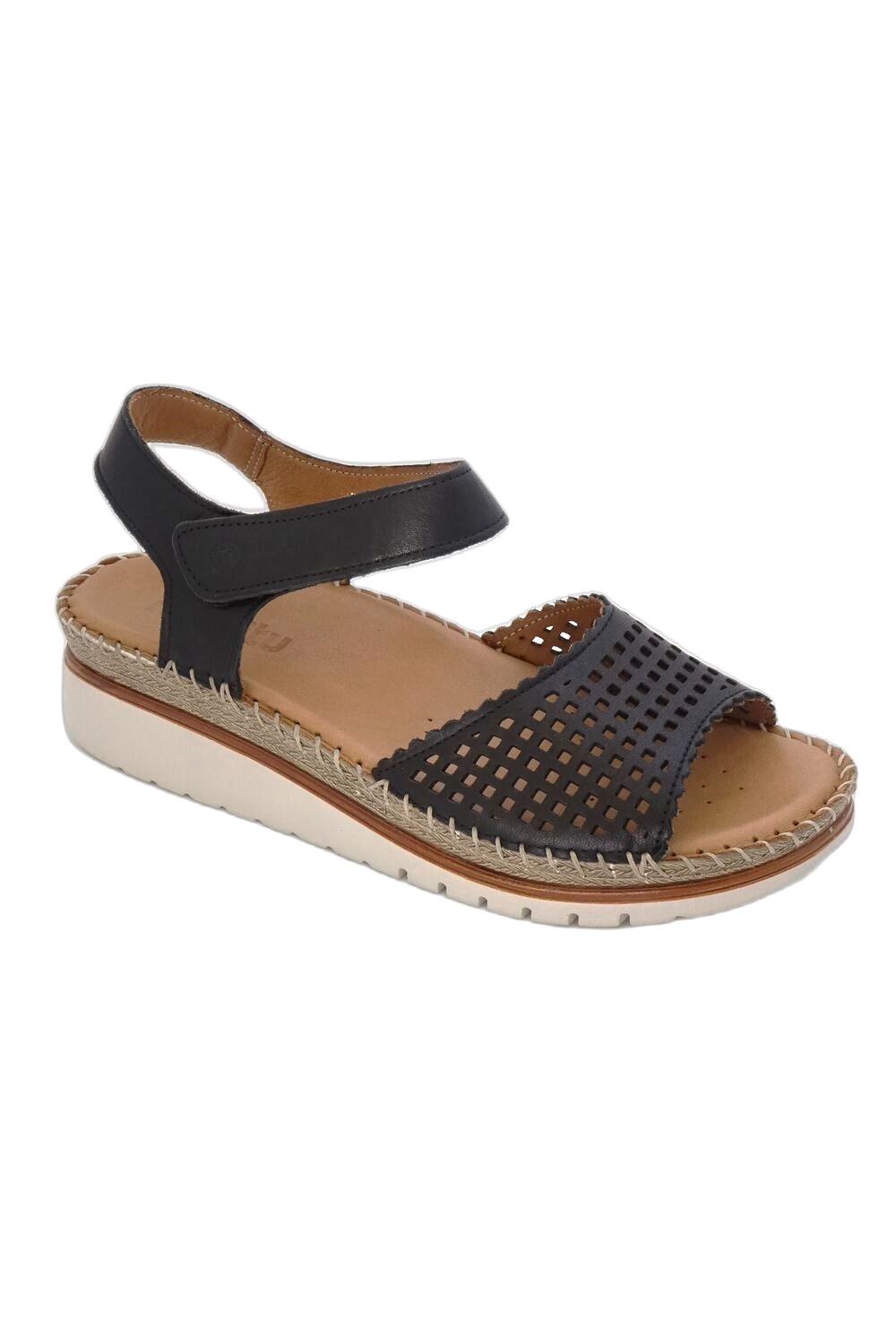 Sandały MANITU 910212 czarny to stylowy modny i wygodny model buta damskiego wykonany z wysokiej jakości skóry naturalnej. Zastosowany ażur nadaje butom ciekawy wygląd oraz zapewnia cyrkulację powietrza dzięki temu buty są doskonałą alternatywą na gorące dni. Wkładka skórzana dwuwarstwowa wykonana z pianki od góry pokryta skórą daje stopom uczucie stania w puchu. Lekka podeszwa delikatnie podwyższona z koturnem. Sandały eleganckie dedykowane zarówno do zwiewnych sukienek, spódnic jak i do spodni. W ofercie mamy też eleganckie buty na szeroką stopę.