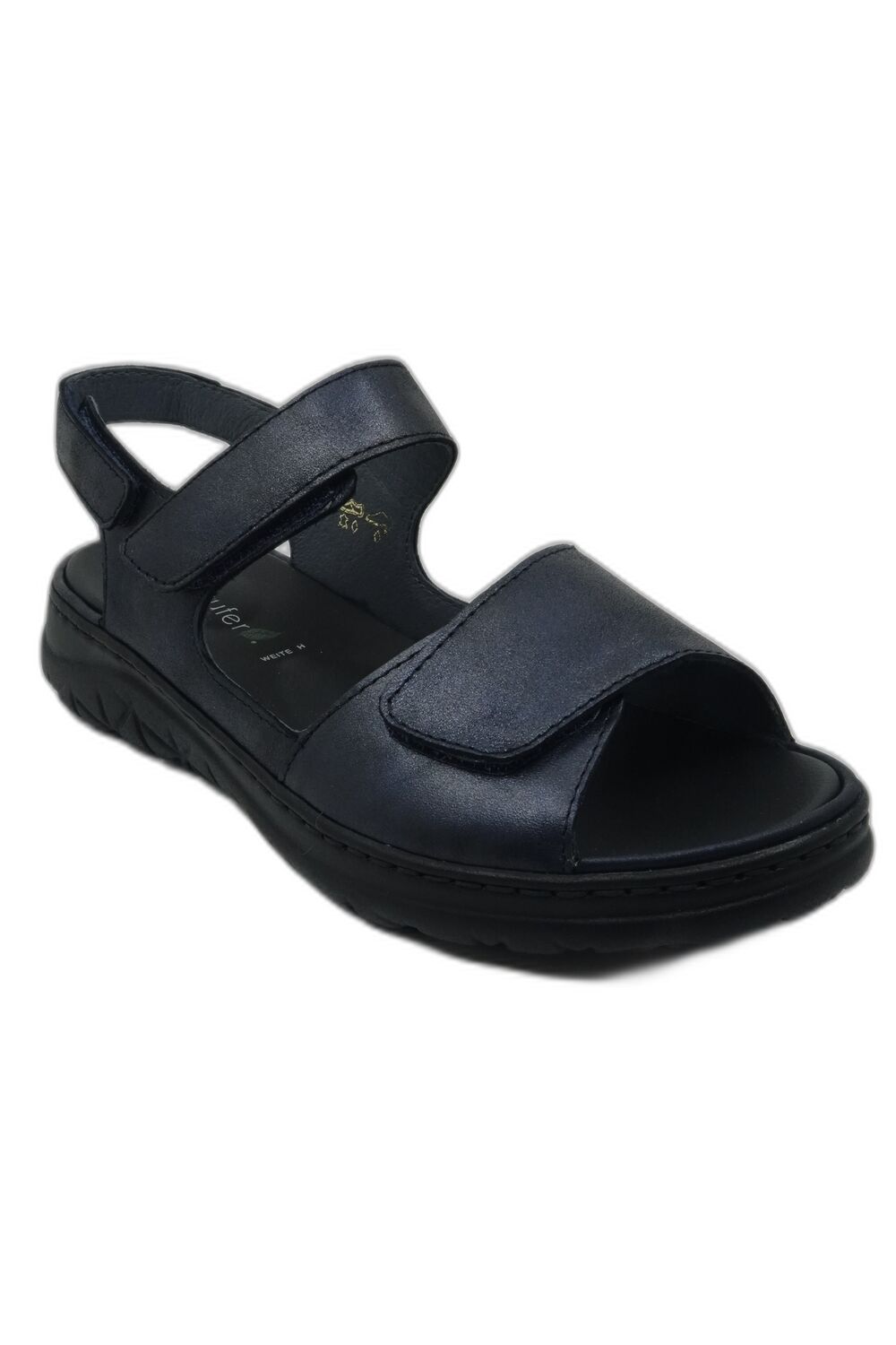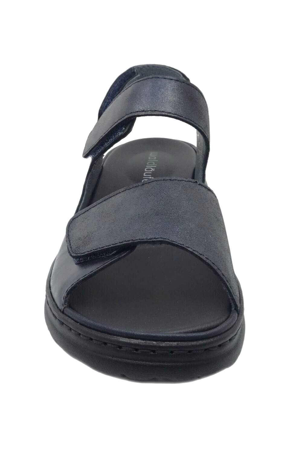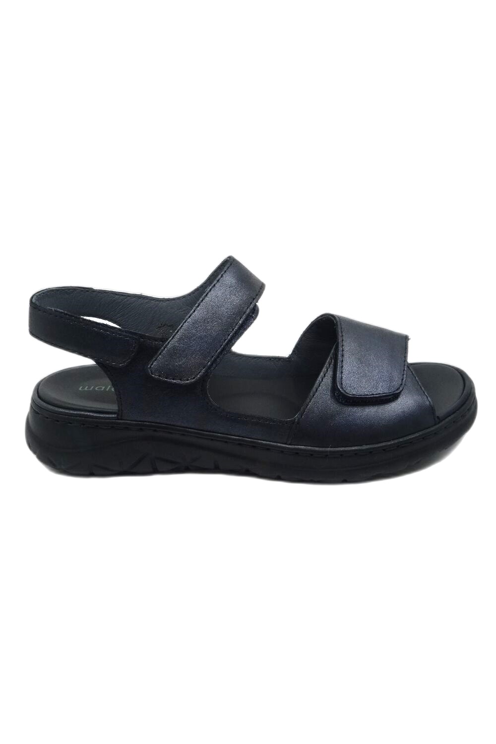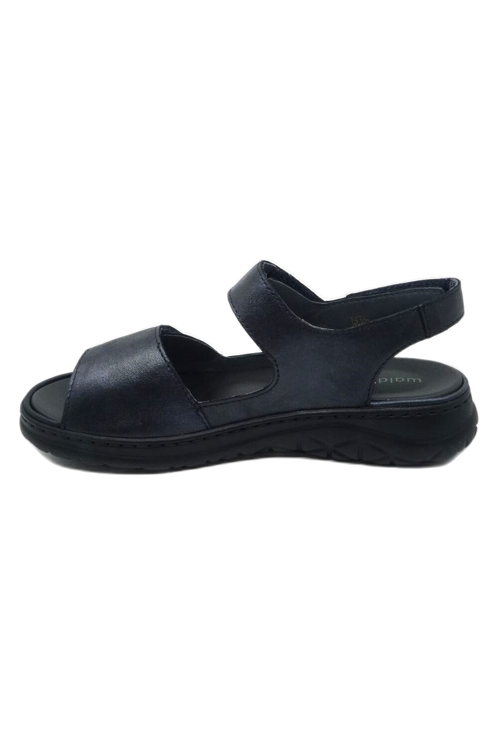 Sandały WALDLAUFER Joline 756001 189 194 czarny to damskie letnie obuwie wykonane z wysokiej jakości skóry licowej. Dwa paski zapinane na rzep pozwalają na wyregulowanie tęgości i dopasowanie jej do tęgości stopy. Pasek podtrzymujący piętę również zapinany jest na rzep. Wkładka wykonana ze skóry posiada wyprofilowanie podłużne i poprzeczne, podpiera łuki stopy odciążając ją, rozkłada równomiernie ciężar ciała. Odciążenie zastosowano także pod piętą. Wkładka jest przypięta do podeszwy rzepem, mozna ją wyjąć i w razie potrzeby zastąpić inną wkładką. Podeszwa wykonana jest z tworzywa, niweluje nierówności terenu, posiada bieżnik, który zapewnia dobrą przyczeoność do podłoża. W ofercie mamy też buty na szeroką stopę.